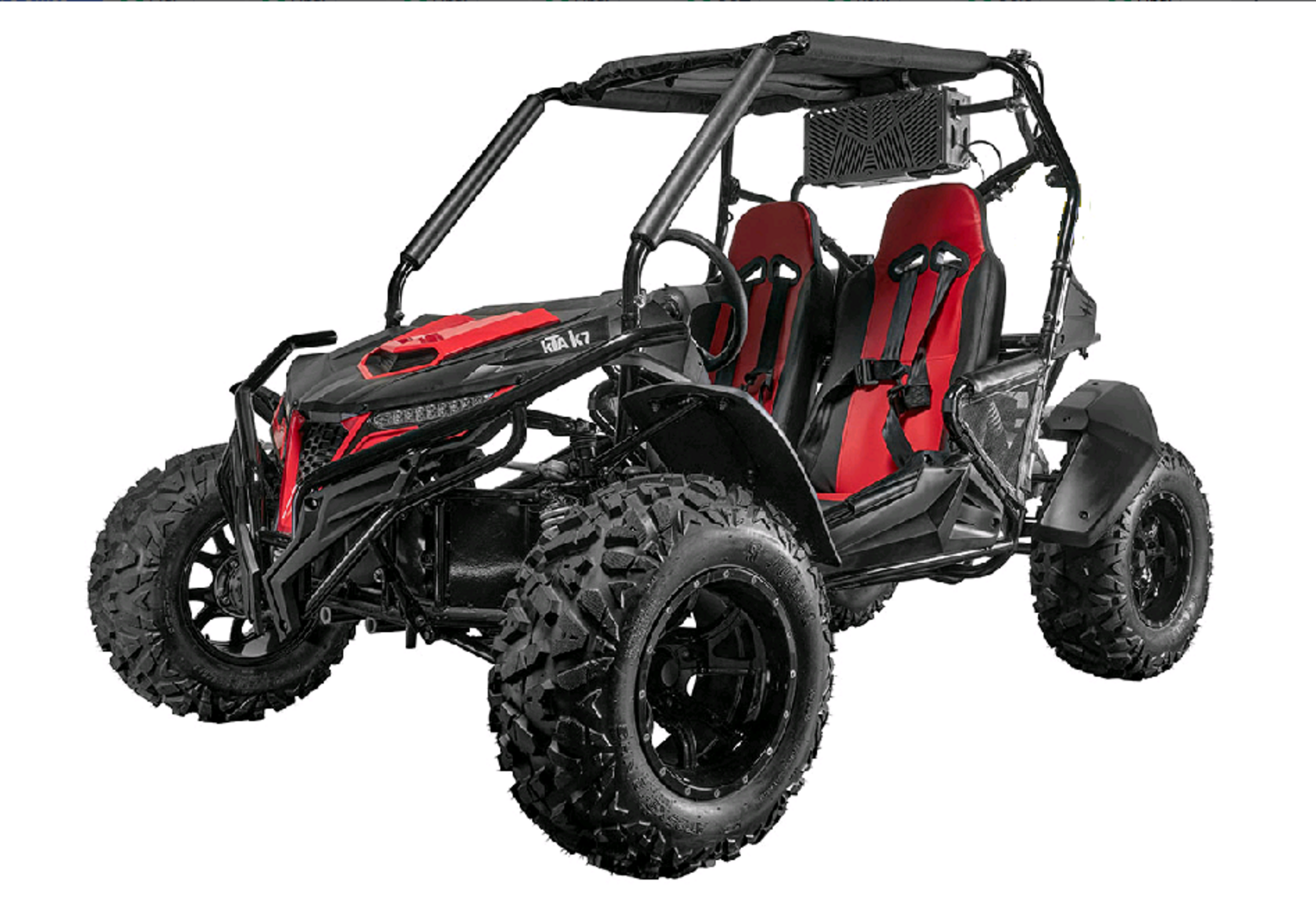 Багги KTA К7LE - cовместная китайско-российская разработка. После 1 года тестов эта модель багги получила ряд доработок и изменений. В базовой версии K7LE уже ПОЛУЧИЛА: перенос радиатора и алюминиевую защиту под него. Получила новую выхлопную трубу. Были внесены изменения в основной силовой агрегат. Усовершенствована и изменена схема проводки. Так же установлен цифровой спидометр, стоп-сигнал, силовой бампер и отличная резина! Все это - БАЗОВАЯ КОМПЛЕКТАЦИЯ! А в лимитированной версии еще и установлены колеса 12 радиуса.Дорожный просвет на версии S LE - 28см. Ватерлиния на уровне 32см. Усиленный каркас обеспечит большую безопасность, дополнительная защита ног лучше защитит от грязи, тканевая крыша даже в базовой комплектации сохранит голову в чистоте. В мини-багги с двигателем 272 куб.см будет комфортно и детям от 12 лет и взрослым. Комфортно расположиться в багги может человек с ростом до 195 см.