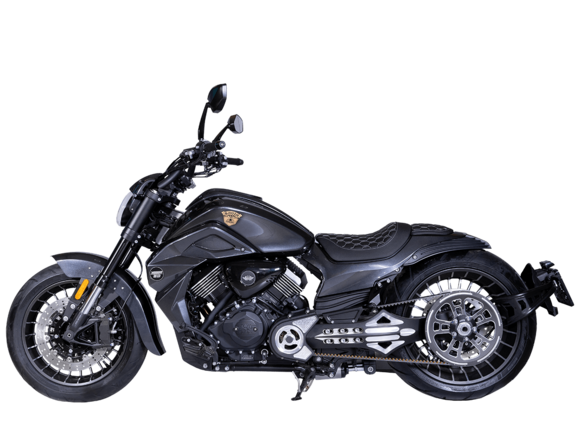GROZA Timberwolf 800 – это не просто средство передвижения, а воплощение силы и выносливости, скрытых под привлекательным внешним видом.Сердце мотоцикла – производительный и надёжный V-образный 2-х цилиндровый 4-тактный двигатель с 4 клапанами жидкостного охлаждения. Максимальная скорость, которую может развить модель, – 160 км/ч.Механическая коробка передач имеет 6 ступеней. Ремень вариатора, произведённый компанией USA Gates, гарантирует долговечность. Топливная система представлена инжектором DELPHI. Запуск двигателя осуществляется с помощью электростартера.Передняя подвеска – перевернутая телескопическая регулируемая вилка с ходом 135 мм, задняя подвеска – пневматическая, регулировка которой осуществляется кнопками на руле или с брелока. Спереди о безопасном замедлении заботятся 2 4- поршневых суппорта с тормозными дисками 320 мм, сзади однопоршневой суппорт с плавающей скобой и тормозным диском 260 мм. Кованые алюминиевые колёса имеют размер 17х18 дюймов. На обоих колёсах есть ABS-система.Отличительная черта модели – увеличенная задняя покрышка 310 мм, которая делает вождение более устойчивым. Размеры модели 2420x890x1130 мм. Колёсная база 1650 мм. Клиренс 130 мм. Масса 288 кг. Топливный бак вмещает 22 л.Приборная панель представлена TFT-дисплеем с возможностью подключения смартфона. LED-оптика обеспечивает яркое освещение. Есть функция настройки сиденья по высоте – от 650 мм до 700 мм.GROZA Timberwolf 800 – сочетание потрясающей динамики, плавной подвески и брутального облика.Комплектация и внешний вид мотоцикла могут отличаться в зависимости от поставки. Изображение на сайте не гарантирует наличия тех или иных опций. Уточняйте информацию при оформлении заказа.