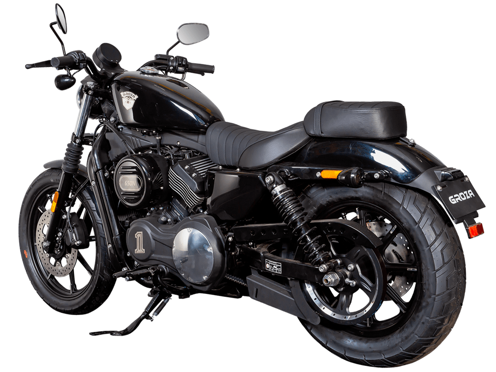 GROZA XS650 – шикарный круизёр, идеальный как для езды по мегаполису, так и для поездок по загородным дорогам. Его дизайн исполнен в классическом стиле, соответствующем всем канонам данного типа мотоциклов.Двухцилиндровый V-образный двигатель объёмом 650 см3 выдаёт внушительные 53 л.с. и при высоких показателях динамики и отличном крутящем моменте способен разгонять аппарат до 160 км/ч. Инжекторный впрыск топлива с инжектором DELPHI увеличивает топливную экономичность, а также позволяет добиться высокой приёмистости и неприхотливости агрегата. Привод на ведущее колесо осуществляется ремнём знаменитой марки USA Gates. Жидкостная система охлаждения не допустит перегрева мотора даже при самом агрессивном вождении.На аппарат установлена 6-ступенчатая механическая коробка передач с классической схемой “1-N-2-3-4-5-6”. Мотоцикл оснащён литыми алюминиевыми дисками диаметром 19 дюймов спереди и 17 дюймов сзади. С неровностями дороги эффективно справляются телескопическая вилка спереди и два газонаполненных амортизатора сзади. Задние амортизаторы являются регулируемыми, что обеспечивает лёгкую перестройку на различные режимы езды. Эффективное и безопасное замедление с любых скоростей обеспечивают гидравлические дисковые тормоза с ABS спереди и сзади.Несмотря на жидкостное охлаждение, двигатель имеет декоративные рёбра на цилиндрах, что придаёт ему очень привлекательный вид в общей композиции мотоцикла.XS650 сочетает в себе отличные технические характеристики, комфорт и надёжность, что позволяет вам ощутить настоящую свободу на любой дороге.