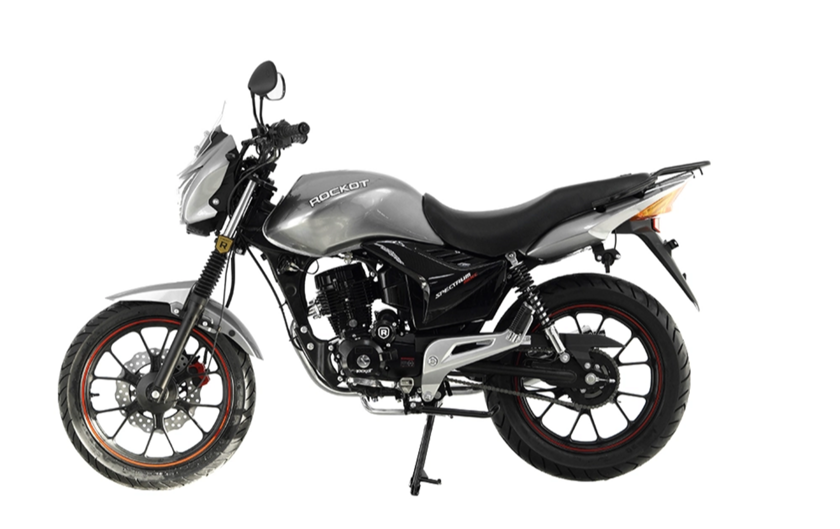 Диски колёсные Спереди и сзади, мотоцикл ROCKOT SPECTRUM 150 украшают литые колесные диски диаметром 17 дюймов, но которых установлены шины с шоссейным типом протектора. Размерность шин: 100:80-17 спереди и 120:80-17 сзади.