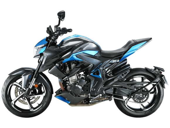 Мотоцикл ZONTES ZT350-R – современный нейкед со стремительным и дерзким дизайном. Хорошо подходит как для поездок в городской среде и маневрирования в межрядье.Силовая установка представлена одноцилиндровым 4-тактным двигателем ZT184MP с 4 клапанами и 2 верхними распредвалами. Двигатель имеет объём 348 см³ и обеспечивает мощность в 39 л.с. Оснащён инжектором BOSCH и системой жидкостного охлаждения. Механическая коробка передач имеет 6 ступеней и схему 1-N-2-3-4-5-6. Запуск двигателя осуществляется с помощью бесключевого доступа.Ёмкость топливного бака 15 литров.Колёса представлены литыми алюминиевыми дисками диаметром 17 дюймов. На мотоцикл установлены датчики давления в шинах, показатели от которых выводятся на приборную панель. Для подвески спереди используется телескопическая вилка, сзади – моноамортизатор. Гидравлические дисковые тормоза произведены испанской компанией J.JUAN, входящей в холдинг BREMBO.Для освещения используется яркая LED-оптика, а приборная панель представлена цифровым дисплеем. Имеется 2 USB-порта.Габариты мотоцикла 2030х795х1120 мм. Колёсная база 1390 мм. Высота по седлу 795 мм. Вес 165 кг.Комплектация и внешний вид мотоцикла могут отличаться в зависимости от поставки. Изображение на сайте не гарантирует наличие тех или иных опций. Уточняйте информацию при оформлении заказа.