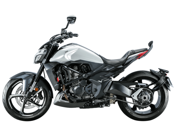Мотоцикл ZONTES ZT350-R1 – современный нейкед со стремительным и дерзким дизайном. Хорошо подходит как для поездок в городской среде и маневрирования в межрядье.Силовая установка представлена одноцилиндровым 4-тактным двигателем ZT184MP с 4 клапанами и 2 верхними распредвалами. Двигатель имеет объём 348 см³ и обеспечивает мощность в 39 л.с. Оснащён инжектором BOSCH и системой жидкостного охлаждения. Механическая коробка передач имеет 6 ступеней и схему 1-N-2-3-4-5-6. Запуск двигателя осуществляется с помощью бесключевого доступа.Ёмкость топливного бака 15 литров.Колёса представлены литыми алюминиевыми дисками диаметром 17 дюймов. На мотоцикл установлены датчики давления в шинах, показатели от которых выводятся на приборную панель. Для подвески спереди используется телескопическая вилка, сзади – моноамортизатор. Гидравлические дисковые тормоза произведены испанской компанией J.JUAN, входящей в холдинг BREMBO.Для освещения используется яркая LED-оптика, а приборная панель представлена цифровым дисплеем. Рычаги тормоза, сцепления и лапки КПП можно отрегулировать. Имеется 2 USB-порта.Габариты мотоцикла 2030х795х1120 мм. Колёсная база 1390 мм. Высота по седлу 795 мм. Вес 165 кг.