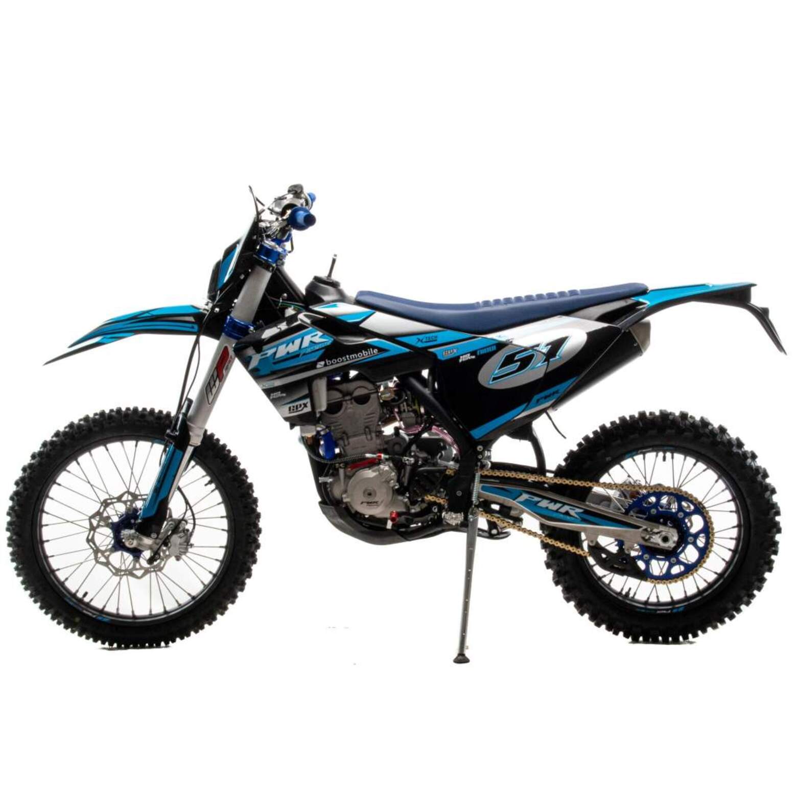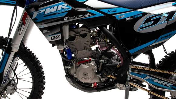 PWR FS300 NC - флагманская модель с кубатурой 300 куб.см. позволяет любому стать участником мотокросса и получить массу впечатлений.300 кубовый двигатель мощностью 34 л.с. с двумя радиаторами водяного охлаждения и вентилятором, для усиленного потока охлаждения, а так же с 4 клапанами ZS 182 MN и производительным карбюратором NIBBI N34 дают мотоциклу отличный разгон и скорость на прямых.Полностью настраиваемая подвеска FASTACE, которая обладает большим ходом и плавной работой для преодоления всех неровностей кроссовой трассы при сохранении ваших сил.Прочный облегченный маятник из алюминиевого сплава с большим сопротивление к нагрузкам на скручивание.Двойной алюминиевый руль переменного сечения 22/28 с низким подъёмом и с подушкой IGP.Это полноценный кроссовый мотоцикл, который является одним из лучших в кроссовой линейке мотоциклов от компании PWR, преимущества которого могут оценить как профессиональные гонщики, так и все ценители гонок по бездорожью. Уникальная комбинация легкого веса, впечатляющей мощи и исключительной управляемости. Модель обладает бойцовским характером, отличными эксплуатационными и динамическими характеристиками.