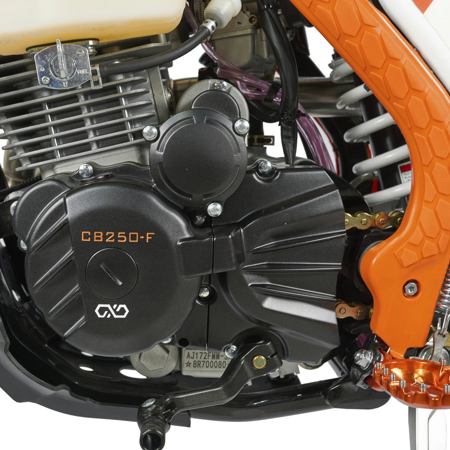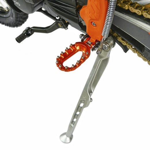 КомплектацияЭлектронная приборная панель, противоскользящее сиденье, защита рамы от протирания ботинками, подножки «AJ1» (алюминий 6063 с шипами), подножка боковая «AJ1» (алюминий 7075-Т6), невозгораемый воздушный фильтр «AJ1» – Twin Air с увеличенной площадью, ведомая звезда «AJ1» (520, алюминий 7075-Т6), защита рук, грипсы OTOM/Lock-On, передние и задние буксаторы «AJ1», откидные алюминиевые рычаги 270, алюминиевая лапка КПП, пульт света КТМ, LED фара 5 линз, моточасы, фрезерованная траверса X trig .ДвигательМодель оснащена надежнейшим 1-цилиндровым 4-х тактным двигателем ZONGSHEN 172FMM-3A с воздушным охлаждением объёмом 249,9 см3, который выдаёт 21 л.с.ПодвескаПередняя вилка "MNT" перевернутого типа T7 48- 910mm с регулировкой на сжатия и отбой. Моноамортизатор "MNT" также с регулировками. Система прогрессии, обеспечивает равномерную, мягкую работу и увеличивает длину рабочего хода подвески. Также ось крепления маятника совпадает с осью крепления ножки. Это существенно улучшает развесовку мотоцикла.КолесаСпереди и сзади установлены антибуксаторы бренда "AJ1", которые притягивают покрышку к ободу, позволяя ездить по бездорожью при низком давлении в камерах, не давая покрышке проворачиваться во время езды. Размер передней покрышки: 80/100 R21. Размер задней покрышки: 120/90-R18. Модель комплектуется "жирной" резиной "KENDA". Все эти характеристики позволяют мотоциклу отлично себя чувствовать в песке и грязи.Тормозная системаПолностью гидравлическая с армированными шлангами. Спереди и сзади установлен двухпоршневой суппорт. Данная конфигурация тормозных механизмов, позволяет быстро и безопасно оттормаживаться даже в самых непростых условиях.Сухой вес мотоцикла 115кг