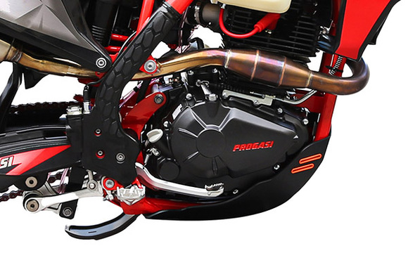 PROGASI Race 300 AirНастало время гонки! В ожидании грязи и полного газа PROGASI Race 300 AIR поможет преодолеть силу притяжения и переписать законы физики! Дерзкий и эпатажный, его внешность никого не оставит равнодушным! Впечатляющая производительность и чувство контроля дают возможность пилоту стабильно выходить на подиум!Двигатель Zongshen PR300Максимально эффективный и надежный двигатель от Zongshen PR300 с воздушным охлаждением и балансирным валом. Данный двигатель известен своей стабильной работой во всем диапазоне оборотов, балансирный вал позволяет свести уровень вибраций на минимум. 6-ступенчатая трансмиссия с усиленной корзиной и дисками сцепления от японского бренда F.C.C. позволяет грамотно распределять и передавать всю мощность. Система дополнительного охлаждения сцепления и технология легкого выжима, позволяют использовать мотоцикл «на пределе»Топливный бак увеличенного объемаНа мотоцикле установлен топливный бак увеличенного объема, что позволяет путешествовать на дальние расстояния без дозаправки.Фрезерованные траверсы CNCИзготовленные из авиационного алюминия 7075, легкие и прочные траверсы выдерживают большие нагрузки. Система настройки положения руля "ближе-дальше" позволяет настроить удобное положение руля в стойке. Кронштейны руля также фрезерованы под руль 1-1/8" (фэтбар, "толстый руль").Спортивные алюминиевые колеса 21/18Усиленные алюминиевые обода PROGASI оборудованы буксаторами, которые притягивают покрышку к ободу, не давая ей проворачиваться во время езды. Также применяются усиленные ступицы, которые сделаны из единого куска алюминия, что создает максимальную прочность конструкции. Покрышки Kenda давно зарекомендовали себя в экстремальных видах спорта. На PROGASI применятся самая злая и зубастая резина. Она прекрасно себя ведет по грязи и песку, а также выдерживает закручивание шипов для катания зимой и отлично показывает себя на пересеченной местности.Сиденье по технологии AcerbisФирменное нескользящее сиденье PROGASI, выполненное по технологии Acerbis anti-slip grip, держит любого райдера как суперклей: специальное ребристое водонепроницаемое покрытие позволяет чувствовать себя комфортно в любых погодных условиях.Мощные тормоза PROGASI с защитойТормоза – это важнейший компонент мотоцикла, от которого напрямую зависит безопасность райдера, а также скорость прохождения поворотов. На всех моделях PROGASI установлены дополнительные расширительные бачки и армированные шланги тормозной системы для безупречного результата. Спереди установлена 2-поршневая тормозная система и 1-поршневая сзади.