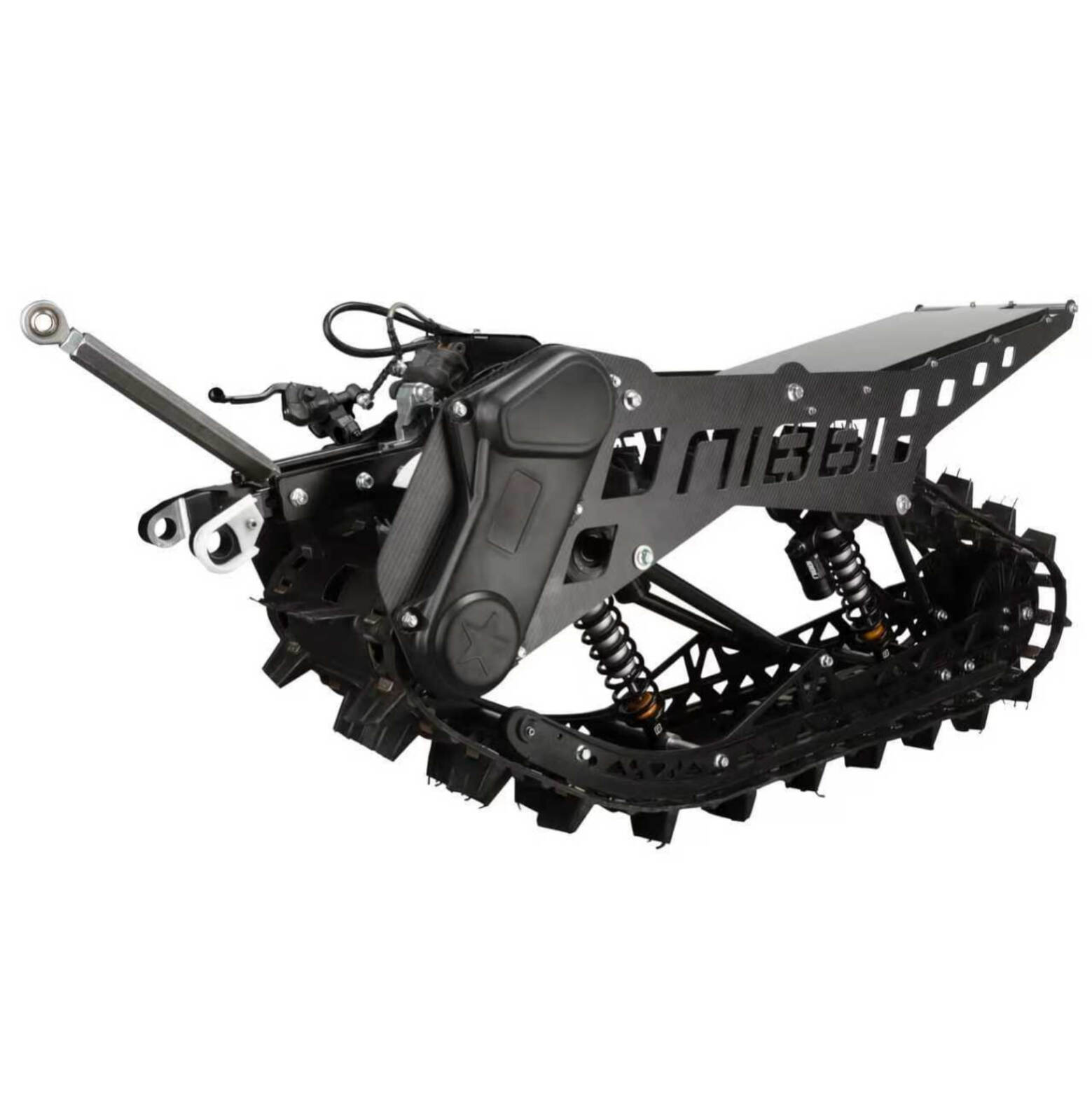 NIBBI Vanguard R-120 — это система переоборудования, которая позволяет превратить кроссовый мотоцикл в сноубайк для экстремальных зимних заездов. Комплект заменяет переднее колесо на лыжу, а заднее — на гусеницу, что открывает новые возможности для покорения снежных просторов.Ключевые преимущества и особенности:Вездеходная гусеничная система: Гусеница размером 3050 × 300 мм с грунтозацепами высотой 50 мм обеспечивает превосходное сцепление и проходимость. Комплект позволяет уверенно двигаться по снегу глубиной от 15 см и преодолевать даже глубокий рыхлый снег до 1,5–2 метров.Подвеска профессионального уровня: Стандартная подвеска R-120 оснащена премиальной технологией амортизации и полной регулировкой. Это позволяет настраивать демпфирование отбоя и сжатия в трех режимах для точного контроля в любых снежных условиях.Проверенный цепной привод: Привод инженерно разработан для максимальной надежности и использует цепь NIBBI 520 HLX2, что гарантирует стабильную передачу мощности как в глубоком снегу, так и на сложных трассах.Полная тормозная система Nibbi: Комплект оснащен собственной гоночной тормозной системой Nibbi, которая обеспечивает мощное и уверенное торможение в любых условиях.Прочная и легкая конструкция: Боковые панели из углеродного волокна снижают общий вес и повышают прочность. Все крепежные элементы заменены на высокопрочные болты с фиксатором резьбы, что исключает риск ослабления даже при экстремальных нагрузках.Технические характеристикиВ таблице ниже приведены основные технические параметры комплекта Vanguard R-120:Параметр ЗначениеРазмер гусеницы 3050 мм × 300 ммВысота грунтозацепов 50 ммШаг грунтозацепов 73 ммВес гусеничного модуля 57.45 кгТормозная система Дисковый тормоз Nibbi, однопоршневойДиаметр тормозного диска 150 ммПодвеска Два амортизатора Nibbi, с двойной регулировкой (отбой и сжатие)Задний ход подвески 85 ммПриводная цепь 520-74LЦепь в редукторе 520-52LМатериал боковых панелей Углеродное волокно (карбон)Рекомендуемый объем двигателя мотоцикла 300 куб. см и болееПрактическая информацияУстановка: Производитель позиционирует R-120 как комплект для самостоятельной установки, для чего предоставляются понятные пошаговые инструкции и видеоуроки. Однако для достижения оптимальной производительности рекомендуется обратиться к профессионалам.Обслуживание: Требуется регулярная чистка, проверка болтов и осмотр тормозов после нескольких поездок. Высокопрочная система креплений и герметичные компоненты подвески минимизируют общие затраты на обслуживание.