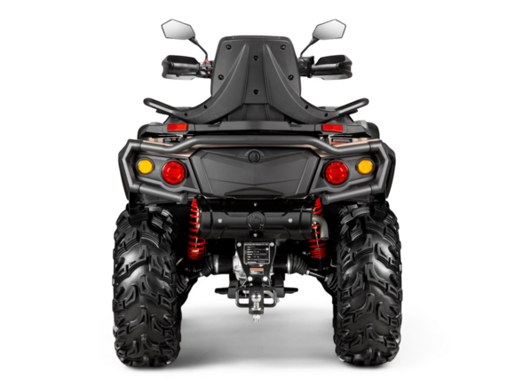 Комплектация Комбинация приборов: - Электронный ключ зажигания; - LCD приборная панель 6,86 дюйма с индикацией основных параметров: вкл/выкл полного привода, индикацией уровня топлива, сигналов поворота и аварийной остановки, подсветки, переключение режимов усилителя руля, информация о техническом обслуживании; - Лебедка с синтетическим тросом и тросоукладчиком, тяговое усилие 1500 кг.; - Ветрозащита рук на руле; - расширители колесных арок; - передний и задний бампер; - замок блокировки рулевого вала; - Электроусилитель руля; - cветодиодная оптика; - дополнительный свет; - фаркоп с электроподготовкой; - звуковой сигнал; - сигналы поворота; - зеркала заднего вида; - бардачок объемом 2 литра под сиденьем; - алюминиевые подножки водителя; - эргономичная задняя и передняя багажные площадки; - розетка 12 Вольт и USB.