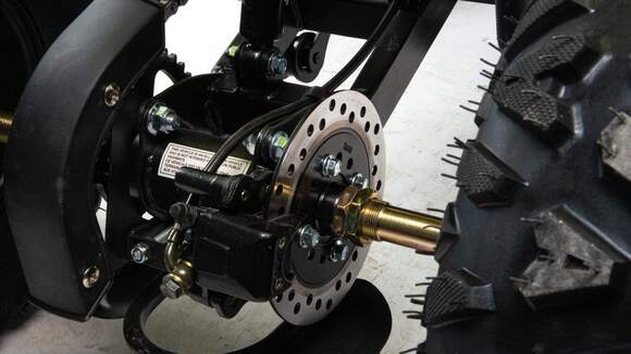 Комплектация Сьемный задний подрамник, защита приводной цепи, защита рук, облегченный бензобак, ручки для второго пассажира, глушитель с термозащитой, сетка ловушка для ног, ограничитель скорости, усиленная рама и цепь, возможность установки сигнализации с родительским контролем (вкл.-выкл)