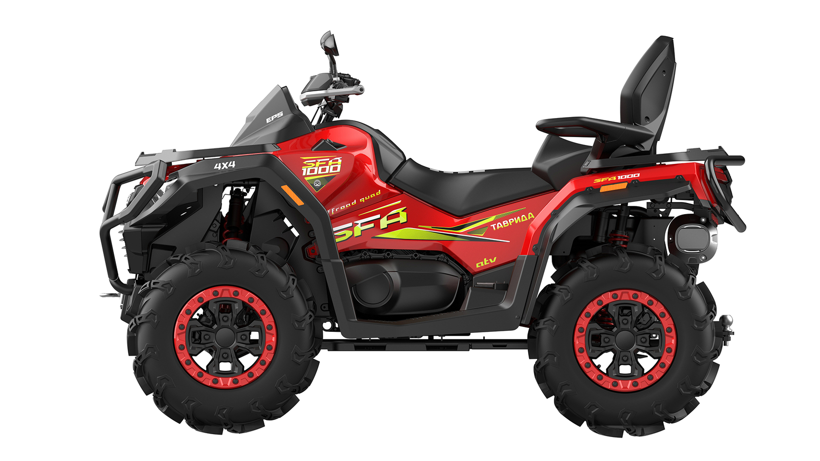 «ТАВРИДА SFA 1000» – новый современный двухместный российский квадроцикл, оснащённый литровым двигателем мощностью 95 л.с., созданный для тех, кто ценит динамику, силу и маневренность, хочет получить максимальные эмоции от управления совершенной техникой.При создании и производстве квадроцикла применены новейшие технологии, которые обеспечивают современный уровень качества и максимальную безопасность эксплуатации весь период срока службы квадроцикла.«ТАВРИДА SFA 1000» подходит как для опытных райдеров, так и для новичков, что делает его универсальным выбором. Квадроциклы «ТАВРИДА SFA 1000» демонстрируют отличную проходимость в российских суровых условиях, благодаря независимой подвеске, высокому дорожному просвету и шинам, которые обеспечивают надежное сцепление с грунтом.Выбирая «ТАВРИДА SFA 1000», Вы выбираете качество и уверенностьДвигатель 976 см³, 95 л.с.Оснащённый современным инжекторным двигателем, квадроцикл демонстрирует отличную динамику и уверенную тягу в любых условиях.– Экономичный расход топлива