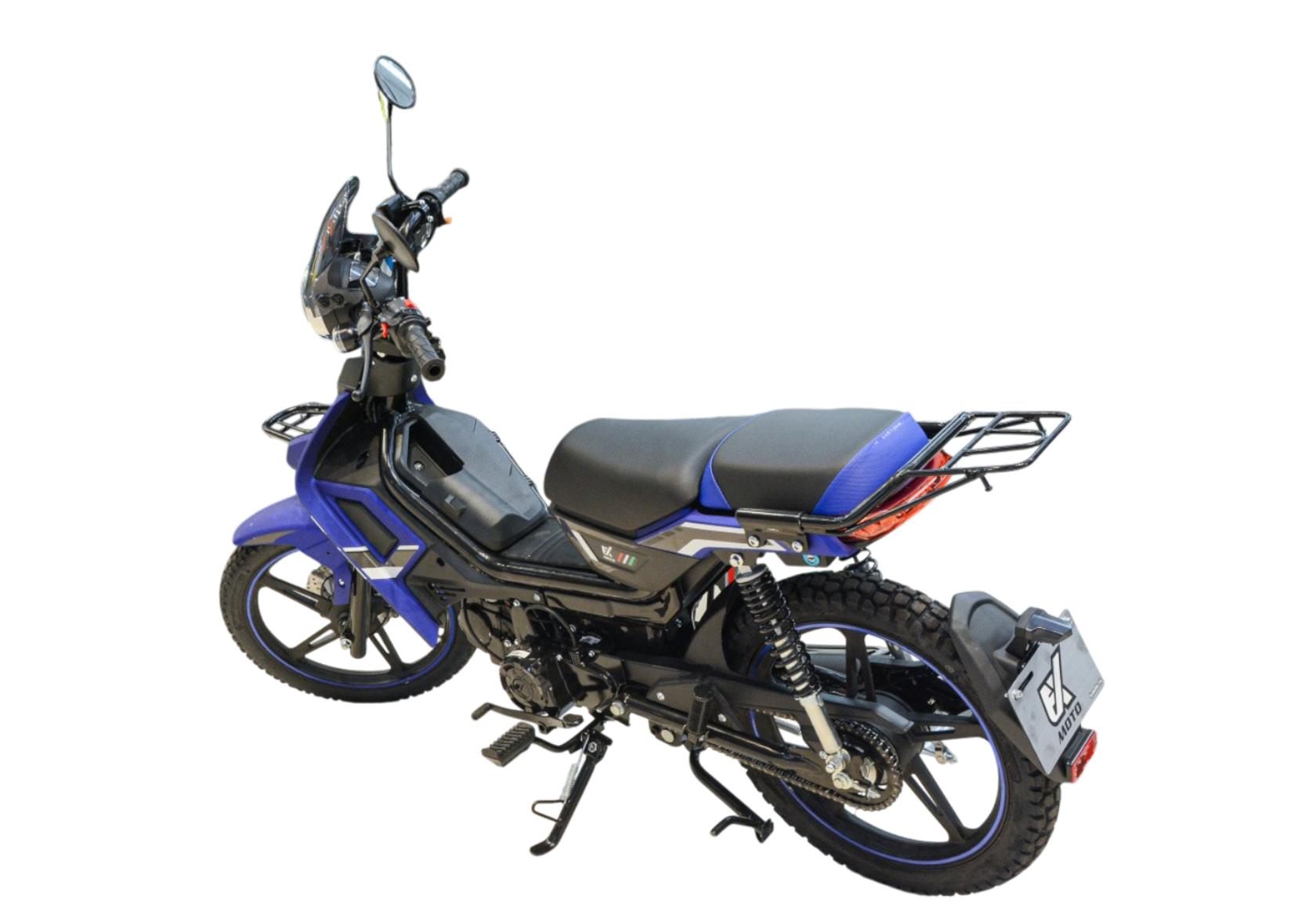 Мопед FXMOTO FX-50 — это идеальное сочетание современного дизайна, надежности и комфорта. Этот компактный транспорт создан для тех, кто ценит удобство в повседневной жизни и любит выезжать за город на природу. С его мощным двигателем объемом 125 куб. см (на базе ДВС 50 куб. см) и воздушным охлаждением, он легко справляется как с городскими улицами, так и с легким бездорожьем.Одним из главных преимуществ FXMOTO FX-50 является его современная оптика. Полностью диодная фара головного света, светодиодные задние фонари и поворотники обеспечивают отличную видимость в любое время суток, а также делают мопед заметным на дороге. Ветровое стекло защищает от ветра и грязи, делая каждую поездку более комфортной.Модель оснащена увеличенным топливным баком, что позволяет реже останавливаться для заправки и наслаждаться длительными поездками. Для дополнительного удобства предусмотрен USB-разъем, который позволит заряжать ваши гаджеты прямо в пути. Кофр и дополнительные карманы на передней дуге помогут организовать пространство для хранения вещей, будь то покупки, инструменты или личные принадлежности.Дизайн FXMOTO FX-50 поражает своей современностью и функциональностью. Новые диски и обновленное переднее крыло не только улучшают внешний вид, но и обеспечивают лучшую защиту от грязи. Цветовая гамма включает пять вариантов: классический черный, яркий красный, глубокий синий, спокойный белый и уникальный оттенок морской волны. Каждый найдет цвет, который подчеркнет его индивидуальность.Безопасность всегда на первом месте. Мопед оснащен дисковым передним тормозом и барабанным задним, что гарантирует надежное торможение даже в сложных условиях. Современный электромеханический щиток приборов предоставляет всю необходимую информацию о состоянии мопеда, а шины размером 2,50/17 (передняя) и 2,75/17 (задняя) обеспечивают отличное сцепление с дорогой.FXMOTO FX-50 — это не просто мопед, это ваш надежный спутник в любой ситуации. Будь то ежедневные поездки на работу, учебу или отдых за городом, этот мопед справится с любой задачей. Его компактность, маневренность и экономичность делают его идеальным выбором для современного человека.