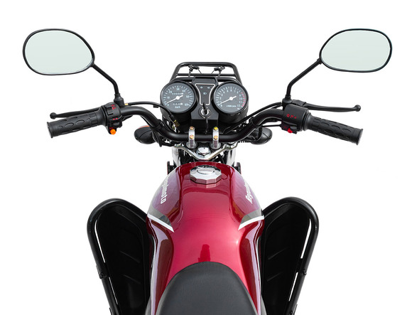 Комплектация Тормозная система – два барабанных тормоза. Усиленные тросы переднего тормоза и сцепления. Кроме того, на Regulmoto Alpha (RM-3) установлены зеркала заднего вида, подножки для пассажира, багажный кофр, пластиковые бардачки, кожух защиты цепи и дуги безопасности.