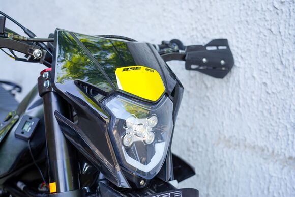 BSE Z9 Yellow Metallic S (ZS175 FMM-5) — мощный и выносливый эндуро-мотоцикл с 4-тактным двигателем объёмом 300 см³ и мощностью 25 л.с. Оснащён усиленной хромомолибденовой рамой, регулируемой подвеской SX, карбюратором NB-PE30 и электростартером. Двигатель: Zongshen ZS175 FMM-5 – МКПП: 5 передач