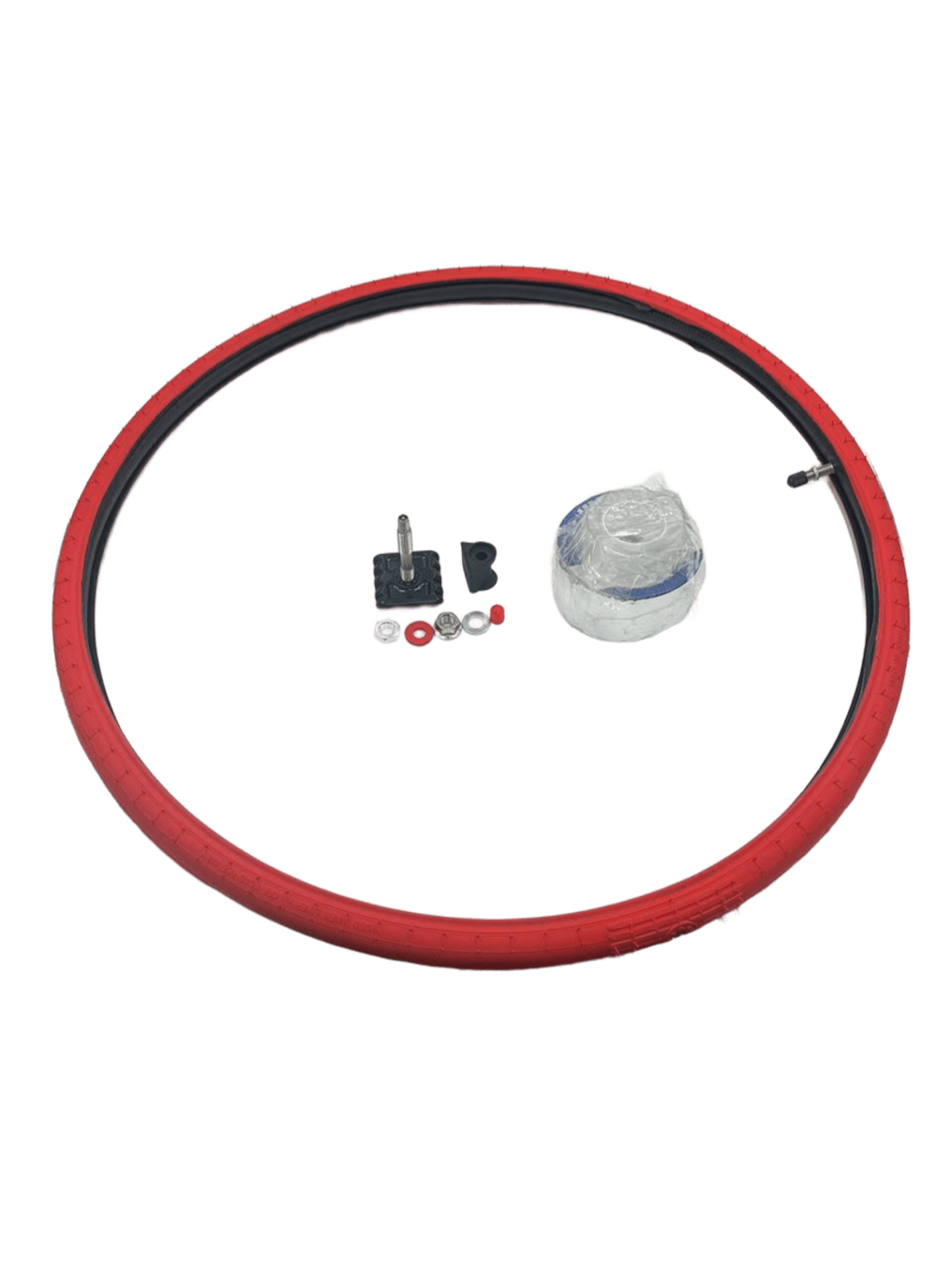 Полная комплектация. Все необходимое для установки в одном наборе Гелевая лента для обода и армированная лента Набор клепления соска-буксатора Тюблис с камерой для надежной герметизации