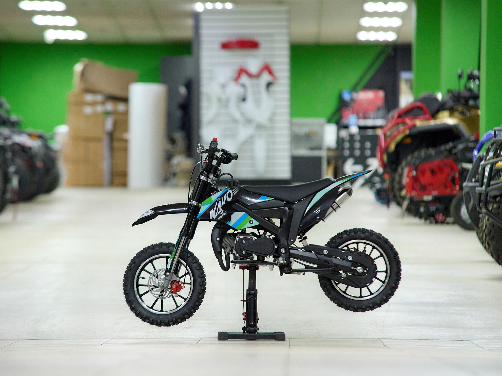 • Оснащён всем самым необходимым, прямо как “взрослая” кроссовая мототехника: динамическая подвеска, надёжные дисковые тормоза;