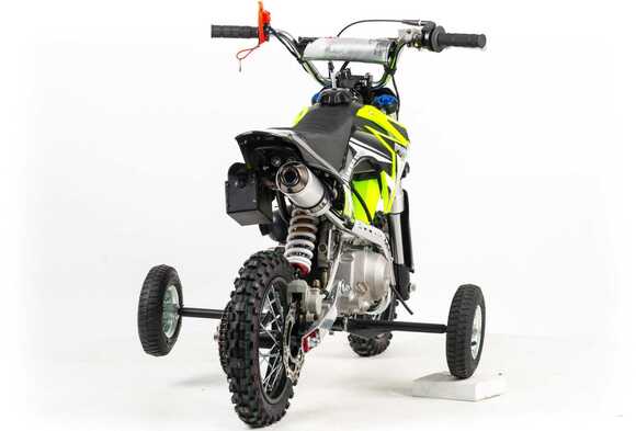 Маленький, компактный, но простой, с приятным внешним видом.Разработанный как первый мотоцикл для вашего ребенка.Двигатель с автоматической трансмиссией, который не требует переключения скоростей и выжима сцеплений, просто повернул газ и поехал, так же имеется электростартер который облегчает запуск двигателя.Безопасность на детском велосипеде - это обязательная функция: чека безопасности, которая выключает зажигание, если ваш ребенок упадет или слезет с мотоцикла, в сочетании с регулируемым ограничителем газа обеспечивает полный родительский контроль над велосипедом. Так-же имеются дополнительные колеса поддержки, для самых юных гонщиков.