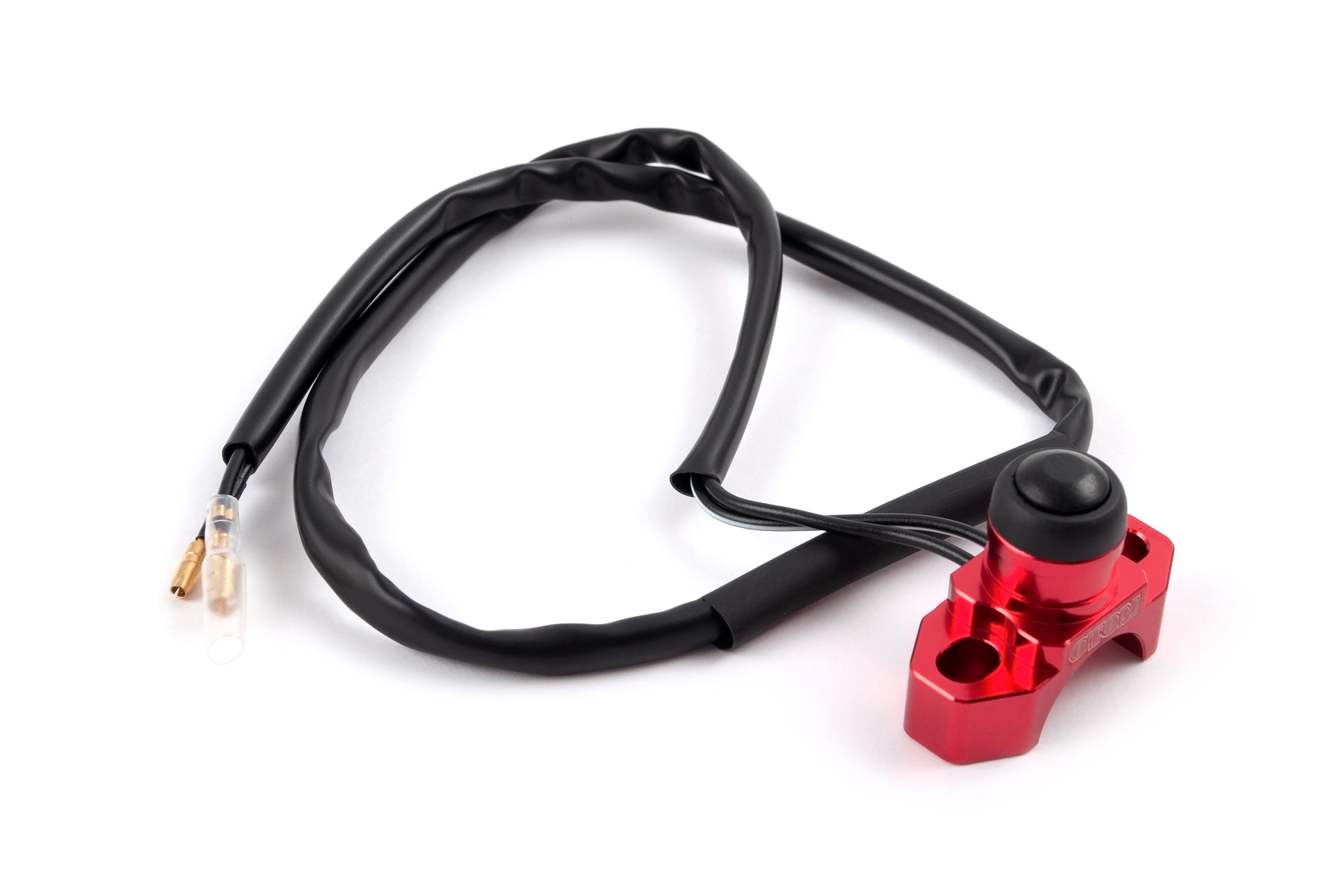 Универсальная кнопка запуска и остановки двигателя OTOM красного цвета. Выполняет функции включения или выключения двигателя в зависимости от схемы подключения. Корпус изготовлен из CNC алюминия, обеспечивает надежную влагозащиту. Стандартное крепление двумя болтами вместо штатного рычага сцепления или тормозной машинки. Подходит для установки как с левой, так и с правой стороны руля.