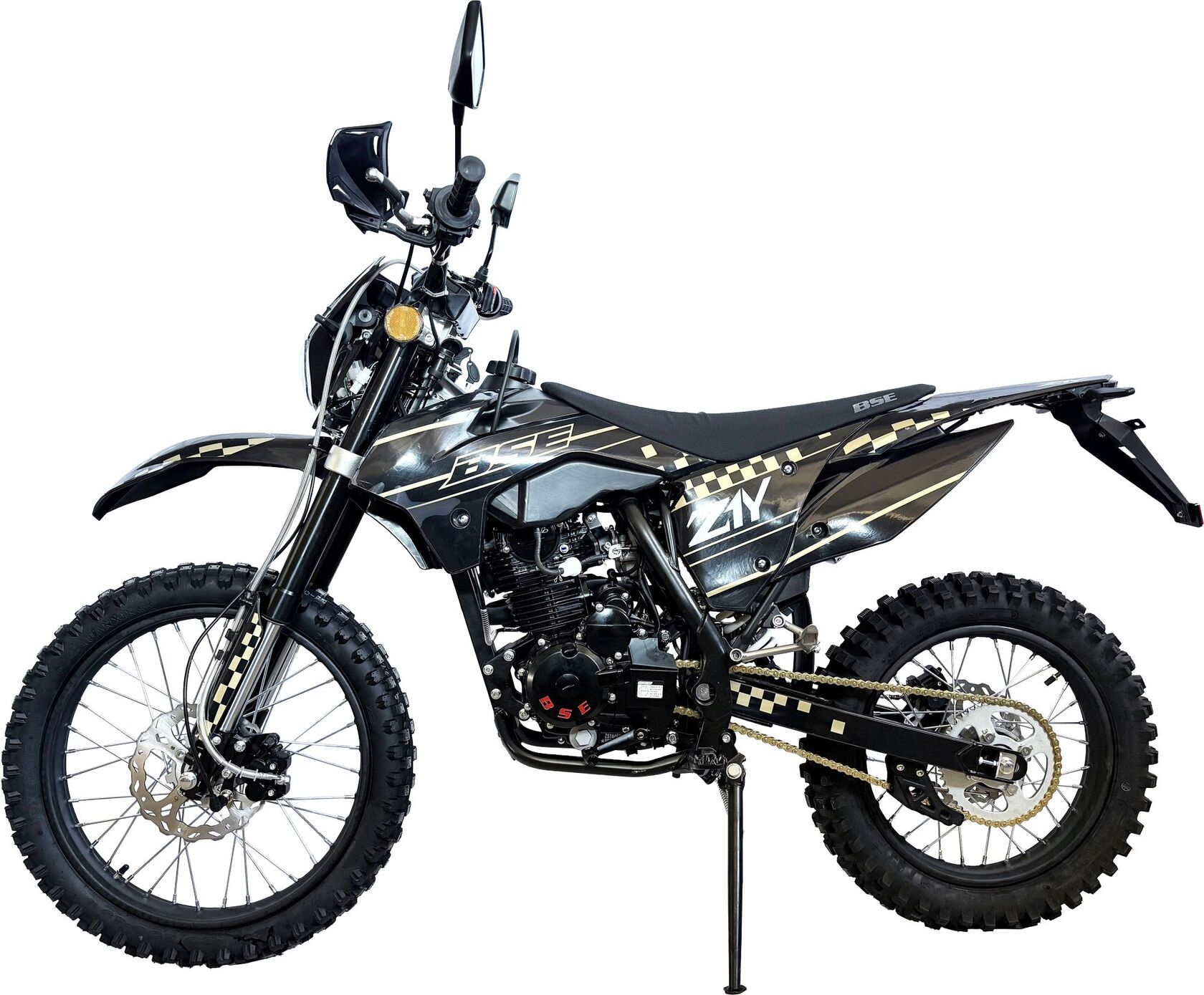 BSE Z1 Y - первоклассный питбайк для истинных ценителей мотоциклов. Этот мотоцикл оборудован мощным и эффективным двигателем Zongshen ZS 161 FMJ, который обеспечивает надежную и динамичную поездку на любой местности.Двигатель этого питбайка имеет объем 161 см3, один цилиндр и четыре такта, что обеспечивает оптимальную комбинацию производительности и эффективности. Максимальная мощность 12 л.с. при 8500 оборотах в минуту и максимальный момент 9.5 Hm при 7500 оборотах в минуту гарантируют динамичное ускорение и отличную управляемость в различных условиях.Карбюратор Nibbi PE-26 и система зажигания CDI обеспечивают эффективное топливоподачу и надежный зажигательный процесс. Двигатель охлаждается воздухом, что делает его идеальным для эксплуатации в различных климатических условиях.Мотоцикл оснащен многодисковым сцеплением в масляной ванне и 5-ступенчатой механической коробкой передач, что обеспечивает плавное переключение передач и удобство в управлении. Электростартер и кикстартер предоставляют различные варианты запуска для удобства в использовании.Шасси BSE Z1 Y оснащено высокопрочной стальной рамой с усиленными линками, что обеспечивает превосходную жесткость и устойчивость. Передняя подвеска представлена телескопической вилкой перевернутого типа, а задняя подвеска - моноамортизатором, обеспечивая надежное вождение на различных поверхностях.Дополнительное оборудование, такое как полностью диодная фара, USB-порт, защита рук, защита картера и стоп-сигнал, делают БСЕ Z1 Y максимально функциональным и безопасным для использования в различных условиях. Этот питбайк - идеальный выбор для тех, кто ценит высокое качество, производительность и надежность на двух колесах.