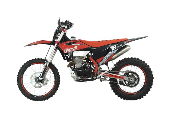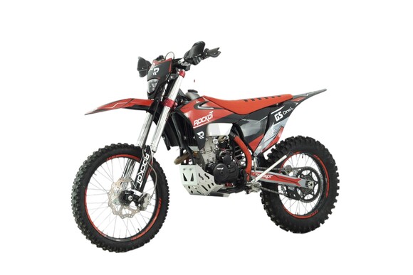 ROCKOT GS ONE L Hotred - полноразмерный эндуро мотоцикл, созданный для покорения бездорожья даже в самых сложных условиях. Мощный двигатель Loncin 176MN YBS300 и хром-молибденовая рама S8, в паре с регулируемыми амортизаторами, позволят насладиться управлением этого мотоцикла как на трассе для эндуро-кросса, так и на трассе для хард эндуро. Богатая комплектация ROCKOT GS ONE L Hotred говорит о его гоночном потенциале и стремлении его обладателя к победе.Дизайн ROCKOT GS ONE L Hotred построен на сочетании красного, черного и серебристого цветов. Их гармоничное сочетание выделяет все сильные стороны и подчеркивает важные элементы мотоцикла. Например, элементы красного цвета в виде патрубков системы охлаждения, защиты рамы и лапки заднего тормоза выделяют на своем фоне новейший двигатель YBS300, окрашенный в черный цвет. На пластик в стиле GASGAS 21` нанесена графика в черном, красном, сером цветах. Окончательные штрихи в дизайн вносят сиденье, обтянутое в красную противоскользящую шкурку, алюминиевые красные траверсы, а также окрашенные в серебро защита двигателя, элементы передней и задней подвески. Колесные диски черного цвета, а для придания мотоциклу более эффектного вида, на них нанесены красные защитные наклейки.Эндуро мотоцикл ROCKOT GS ONE L Hotred оснащается самым современным четырехтактным двигателем, объемом 300 (294,9) см³, от одного из крупнейших и технологичных заводов LONCIN (Лончин) - LX176MN YBS300. Данный двигатель имеет систему газораспределения типа DOHC с двумя распредвалами и четырьмя клапанами. Вышеуказанный объем достигнут благодаря диаметру цилиндра 76 мм и ходу поршня 65 мм. Степень сжатия -11:1, из чего следует, что двигатель работает на топливе, уровнем качества не ниже АИ-95. За образование топливной смеси отвечает карбюратор PWK34. Все это позволяет достичь данному двигателю столь высокой мощности в 28,5 лошадиных сил. Максимальный крутящий момент в 25 Nm достигается при 8500 об/мин. Система охлаждения – жидкостная, с двумя радиаторами, вентилятором и расширительным бачком. Продлит ресурс мотора - система очистки моторного масла со съемным фильтрующим элементом. Для обеспечения максимального комфорта во время тренировок, двигатель YBS300 оснащен балансирным валом, снижающим уровень вибрации. Система выхлопа состоит из приемной трубы из нержавеющей стали с “PowerBomb” и прямоточного глушителя.В сравнении со схожим по характеристикам двухвальным двигателем NC300S, YBS300 весит на 4,5 килограмма легче, что играет важную роль в развесовке мотоцикла.ROCKOT GS ONE L Hotred построен на современной раме S8 из хром-молибденового сплава стали, что указывает на высокую прочность и малый вес мотоцикла. Сделать раму более прочной, в сравнении с другими аналогами, удалось за счет применения восьми- и шестигранного сечения передних и боковых труб. Данная рама разрабатывалась исключительно для применения в эндуро и демонстрирует наилучшую управляемость и эффективное поглощение ударных нагрузок, чем дополняет работу подвески. Рама окрашена в черный матовый цвет. Все открытые части рамы надежно защищены: спереди и снизу алюминиевой защитой двигателя, а сбоку - защитой из прочного пластика.Спереди и сзади установлены амортизаторы, производящиеся по рекомендации завода-производителя. Передняя вилка имеет длину 910 мм, а толщину рабочего штока 41 мм. Сзади установлен моноамортизатор длиной 465 мм. Для обеспечени
